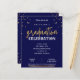 Um alternativo de barato de qualidade em um papel menor, mas ainda durável. LEMBRETE AMIGÁVEL para usar o menu suspenso para selecionar a QUANTIDADE de folhas que você irá comprar. Este é um Elegante Marinho e Dourado Convite para Graduação de Script. Minúsculos brilhos de ouro e embelezamentos de linha de ouro. A graduação é definida em uma fonte moderna do estilo de escrita manual do script. Facilmente personalizado!