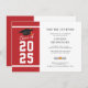 Adicione seu ano de graduação, nome e detalhes do local com data para este moderno fundo vermelho e branco negrito com convite de festa de formatura de tipografia negra usando nosso botão "Personalizar". Convites simples de festa de formatura com rolagem e boné de formatura com cartazes modernos.