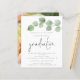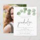 Um valor para o alternativo do ORÇAMENTO em tamanho menor de 4,5 x 5,6" de semirbrilho de 110 lbs, que é de espessura semelhante a um cartão postal (no entanto, não é adequado para uso como cartão postal). POR FAVOR, OBSERVE QUE HÁ UM convite por folha. Convite para Graduação de Foto do Script Eucalyptus 2024 de Orçamento. Estilo botânico minimalista para o formando, com folhagem de aquarela na parte superior à direita. Um script manuscrito para Graduação e o resto do texto que você pode personalizar facilmente. Substitua a imagem de exemplo no verso por sua.