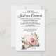Esta imagem mostra um convite de formatura maravilhosamente projetado, perfeito para celebrar um formando especial. O convite apresenta uma tipografia elegante e um design floral com flores cor-de-rosa e folhas verdes, juntamente com uma ilustração de rolagem no fundo. Este convite é totalmente personalizável, permitindo que você personalize o nome do formando, os detalhes do evento e as informações de RSVP para criar uma manutenção exclusiva e memorável para seu dia especial.