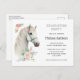 Convite postal com uma ilustração mágica de uma bela cabeça de cavalo branco. Cercado por pequenas flores cor-de-rosa giras. Boho elegante para amantes de cavalos.