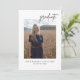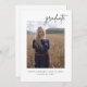 Convites de graduação em dupla face com script moderno, apresentando uma foto do seu formando com nome de classe e ano. Personalize as costas com os detalhes da sua festa.