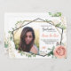 Boho Floral Dourado Convite para Graduação Geométrica. Uma moderna linha geométrica falsa dourada e um convite para festas de formatura elegante floral rosa branco e rosa. Este convite de casamento de goma-chic é perfeito para qualquer garota de glama clássica e sofisticada. Este design é perfeito para o evento de tendências e na moda com a sua própria mensagem, fotografia e informação. Todas as designs são impressas.