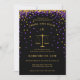 Convite para graduação na Faculdade de Direito com confete roxo e dourado e uma escala dourada de símbolo de justiça. Personalize o texto para sua própria cerimônia de formatura! Nota: A folga dourada é um efeito impresso, não será utilizada nenhuma folga real no fazer destes convites.