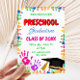 Celebre o grande marco do seu formando com este adorável Convite para Festas de formatura da pré-escola! Perfeito por anunciar o fim de seus primeiros dias de escola e convidar amigos e família para se juntarem à comemoração. Este convite digital editável combina design lúdico com fácil personalização, para que você possa personalizar os detalhes em minutos e enviar através de texto, email ou impressão!