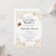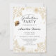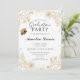 Este é um convite elegante de festa de formatura com um design floral de ouro com sotaques delicados e uma fonte sofisticada de escrita. O layout inclui texto personalizável para o nome do formando, escola, data, hora, local e detalhes de RSVP. Uma pequena ilustração de boné de formatura acrescenta um toque comemorativo. Perfeito para comemorações formais e de na moda.
