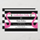 Luz rosa divertida sotaque este divertido Convite à Graduação em um fundo branco e preto listrado, fazer perfeito para um CHURRASCO de verão, luau, reunido pela piscina, ou festa de verão.