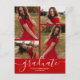 Adicione suas fotos favoritas a estes cartões postais de convite para festas de formatura com as palavras formando e classe de em caracteres quicos em um fundo vermelho de cor da escola escarlate na frente e seus detalhes no verso. Mais designs e cores feitas em nossa loja.
