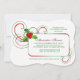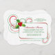 Um belo convite que é perfeito para qualquer celebração de feriado. O fundo branco apresenta espirais vermelhas e verdes e um cluster oco no canto de um painel de mensagens retangular. Quer economizar dinheiro? Impressão este design no papel básico de canto quadrado.