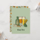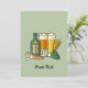 Ilustração de cerveja. Frasco, vidro, abridor, saltos e cevada. Cor de fundo personalizada. Custom Text.