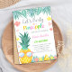 Tragam as vibrações tropicais para a vossa celebração com este convite de aniversário divertido para o abacaxi! Apresentando ilustrações brilhantes e coloridas de abacaxi, este cartão é perfeito para um ensolarado aniversário de verão, festa de piscina ou evento temático tropical. Totalmente editável para sua conveniência, para que você possa personalizá-lo para ajustado dos detalhes da sua festa!