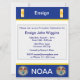 A frente deste convite azul e dourado é decorada com o dispositivo de colarinho do Alferes e o logotipo da NOAA Commed Corps. O verso é decorado com o logotipo da NOAA Commed Corps. Você pode personalizá-lo para uma promoção ou celebração de aposentadoria.