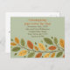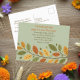 Convide seus amigos para um jantar de Friendsgiving moderno e elegante com este cartão postal minimalista. O design apresenta um ramo simples e delicado com folhas em cores de outono suaves e discretas, criando um clima sutil e sofisticado. O layout limpo facilita a leitura de todos os detalhes importantes do evento, e a frente personalizável permite que você o torne seu. É a maneira perfeita de definir um tom elegante e discreto para sua reunião.