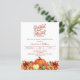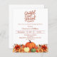 Um fundo branco. Decorado com abóboras e flores laranja e amarelas. Personalize e adicione os detalhes da festa.