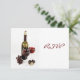Convite para jantar de celebração com vinho e queijo, apresentando um ambiente elegante, mas casual, com garrafa de vinho, taça de vinho, figos e uvas.