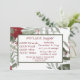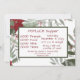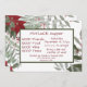 Um belo quadro vermelho de poinsettia ao redor do texto convidando-o para um jantar de Natal de Potluck. O texto frontal é emoldurado em um retângulo verde com texto vermelho. O verso tem um quadro verde com texto vermelho para leitura clara.