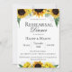 Convite de festa de noivado rústico chic com girassóis em aquarela e gipsófila em fundo bordô. Personalize o estilo, cor e tamanho da fonte do texto. A cor do fundo também pode ser personalizada para combinar com o seu evento.