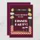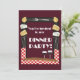 Trata-se de um belo convite de festas jantado, com uma moldura de vinho, queijo e fruta, juntamente com um pano de mesa vermelho. O verso contém os detalhes do evento, juntamente com uma citação, e pode ser personalizado.