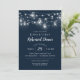 Barato personalizado de ensaio de casamento impresso janta convites com um modelo fácil de usar para personalização. Este design de chic rústico apresenta cadeias de luzes brilhantes de cordas e frascos de pedras em um fundo azul marinho escuro. Personalize o convite com os detalhes do seu janto de ensaio ou personalize o texto a ser usado para qualquer evento. Use as ferramentas de design para escolher qualquer cor de fundo, adicionar fotos e personalizar as fontes e cores do texto para fazer um design único para a sua festa de ensaio de casamento.