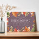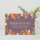 Nosso encantador e moderno convite para o janto de Ação de Graças chama amigos a celebrarem o "Dia de Amizade" com você no estilo. Design apresenta uma borda de folhas, botões e ramificações pintadas de aquarelas no outono, com seus detalhes de apresentação de Amizade no centro, em branco, sobre um fundo rico em ameixa.
