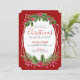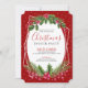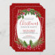 Elegante Christma Holly e buquês verdes de inverno, com uma estrutura geométrica branca moderna. Fundo vermelho-escuro alterável