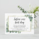 Greenery Eucalyptus, antes do nosso melhor dia, Janto de ensaio de casamento Cartão de convite. Planejar uma celebração do Janto de ensaio do casamento com a futura noiva e futura noiva, antes do seu grande dia? Convide os convidados com este Cartão de Convite para Janto de Ensaio de Casamento Russo. Adicione os detalhes do janto de ensaio em caracteres pretos / letras correspondentes. #TeeshaDerrick