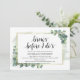 Greenery Eucalyptus, respira antes que eu faça, Janto de ensaio de casamento Cartão de convite. Planejar uma celebração do Janto de ensaio do casamento com a futura noiva e futura noiva, antes do seu grande dia? Convide os convidados com este Cartão de Convite para Janto de Ensaio de Casamento Russo. Adicione os detalhes do janto de ensaio em caracteres pretos / letras correspondentes. #TeeshaDerrick