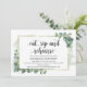Greenery Eucalyptus, coma, sip e ensaie, Janto de ensaio de casamento Cartão de convite.Planejar uma celebração do Janto de Ensaios de Casamento com a futura noiva e futura noiva, antes do grande dia deles? Convide os convidados com este Cartão de Convite para Janto de Ensaio de Casamento Russo. Adicione seus detalhes de janto de ensaio em caracteres pretos / caracteres de correspondência.