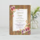 Este elegante convite de janto de ensaio de casamento dá uma olhada atualizada no tradicional convite de casamento floral. Apresenta imagens impressionantes de rosas violetas violetas bronzadas com folhas coloridas e ornamentos de botões. As imagens do buquê floral decoram os cantos superior esquerdo e inferior direito de uma seção de texto branco, que é revestida em ouro fino correspondente. Seu texto personalizado está em ouro e violeta escura no centro. Tudo é colocado sobre um belo fundo de imagem de madeira quente com toques de fazer de luz dourada que parece brilhar. A parte de trás do convite tem o mesmo padrão de madeira. Elegante e apropriado para casamentos em qualquer estação!
