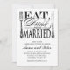 Coma, Beba e seja casado! Janto de ensaio Convite com pratos elegantes e escrita de caligrafia. Visite o ONimages Vintage Design para uma seleção na moda de convites, postagens de casamento e artigos de papelaria personalizados com uma vintage e uma mistura moderna. ©2010 ONimage Vintage Designs. Todos os Direitos Reservados.