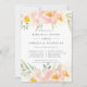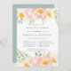 Elegante cor d'água, cor floral, janta quadros de convite para o ensaio de cerimônia e janta detalhes de celebração com uma borda de flores pastel a aquarela em pêssego claro e rosa-claro, com folhagem verde-menta.