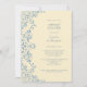 Coloque a palco para uma noite de ensaio de casamento com este elegante convite de janto de ensaio sobre o tema da manteiga amarela. Os tons de amarelo cremoso e azul empoeirado são perfeitos para um casamento vintage romântico de dinheiro ou um casamento floral. Personalize os detalhes e adicione a noiva e o monograma do noivo no verso. Projetado pelo Simple Desert Design Studio. Mande-nos uma cor personalizada que corresponda ao seu tema de casamento.