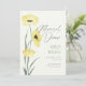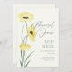 Estes simples cartões de ensaio de casamento de 5" x 7" apresentam duas papoilas aquáticas amarelas de borboleta com a saudação, "Janto de ensaio" em cinzas com marcadores para os nomes do casal de casamento, localização jantada, endereço juntamente com o tempo de janto e ensaio. Adicione seu site de casamento para criar seu próprio código QR no verso.