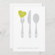 Celebre seu janto de ensaio com este convite de "servir um pouco de amor". Silverware com motivo cardíaco, espaço para escrever mais informações na parte de trás.