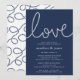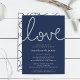 Nossos elegantes convites para janto de ensaio de verão apresentam estilo náutico clássico em azul e branco marinho. "Amor" aparece no topo em letras brancas escritas formadas com corda náutica. Personalize com seu ensaio de cerimônia e jante detalhes abaixo em uma combinação chic de serif e sans serif lettering. Perfeito para jantadas náuticas, técnicas de praia ou de ensaio de verão. Convites invertendo a um padrão de corda em marinho em branco.