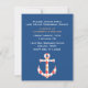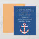 convite de janto de ensaio de casamento temático na moda náutico feito em azul, com gráficos de uma âncora de barco com padrão branco, laranja e pêssego argyle. O texto em branco e pêssego é totalmente personalizável e pronto para personalizar seu evento especial.