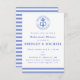 NewParkLane - Convite para Janto de ensaio náutico personalizado, com uma âncora de aquarela azul em um quadro circular, contendo seus nomes e data do casamento. Na parte de trás e na parte inferior do convite, um padrão estriado azul marinho. Uma design moderna e divertida para uma celebração náutica de casamento temida! Personalize com seus nomes, data de casamento ou outras informações para um design personalizado. Todo estilo de texto, cores, tamanhos podem ser modificados para ajustado das suas necessidades. Verifique se há itens correspondentes nesta coleção. Você tem desejos pessoais específicos de design? Sinta-se livre para me contactar!