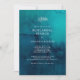 Este janto de ensaio de aquarelas do oceano é perfeito para o seu janto de ensaio de boho tropical. Ele é projetado com folhas tropicais brancas minimalistas e um impressionante fundo azul-esverdeado.