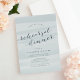 O convite para janto de ensaio elegante e moderno de aquarelas apresenta um fundo de lavagem a aquarelas em tons de tons de verde-marinho, acentuado com caligrafia cúbica e serifa em azul de cinza de ardósia. Coordenando itens disponíveis em nossa coleção Chiffon.