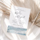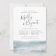 Nossos elegantes convites para janto de ensaio de verão apresentam estilo náutico clássico com um olhar limpo e minimalista. Design apresenta uma lavagem de aquarela ao longo do fundo em azul-cinza pálido, com o ensaio de cerimônia e os detalhes de janto em uma combinação chic de blocos, itálico e tipografia de script com letra de mão. Perfeito para jantadas de ensaio náuticas ou de Verão. Convites desenhados à mão em faixas onduladas desenhadas à mão em tom azul-esverdeado.