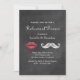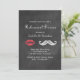 Um bigode e lábios divertidos, em um fundo de quadro ilustrado, destacam esse convite do Janto de ensaio. Role para baixo para ver a coleção completa.