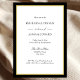 Preto e branco com um toque de convite formal para janto de ensaio de casamento. Bloco elegante e texto de script enquadrados dentro de uma borda dourada em preto e fino. Preto para trás. Para ajustar o layout, clique em Personalizar, Editar Texto e, em seguida, clique em e arraste seções de texto para os locais desejados. Use Cntrl para selecionar e mover várias seções ao mesmo tempo.