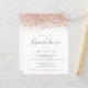 Um valor para o alternativo do ORÇAMENTO em tamanho menor de 4,5 x 5,6" de semirbrilho de 110 lbs, que é de espessura semelhante a um cartão postal (no entanto, não é adequado para uso como cartão postal). POR FAVOR, OBSERVE QUE HÁ UM convite por folha. Convite para Janto de ensaio de brilho Dourado no Rosa de orçamento. Um roteiro de conjunto na moda informal para Janto de ensaio e o resto da tipografia que você pode personalizar facilmente. As bordas de falso brilho em ouro de rosa estão no topo de ambos os lados.
