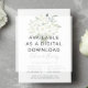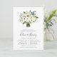 Os convites de janto de ensaio floral elegantes apresentam um buquê de rosas brancas de cor aquosa e peonias com folhas e folhagem botânica verde-esbranquiçada. Personalize com seus detalhes de janto de ensaio abaixo em uma mistura de blocos, serifas e tipos de caligrafia. Inclui espaço para o ensaio de cerimônia e janto ou celebração.