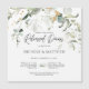 Design apresenta a redação Jante de ensaio em um roteiro de caligrafia moderno cercado por eucalipto verde acentuado em ouro. Personalize facilmente com informações importantes da escolha para torná-las suas.