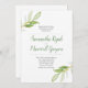 Projetado pela Victoria of VG Invites, o Lush Watercolor Greenery fama seus detalhes do convite para janto de ensaio de casamento. Anuncie seu casamento em estilo. Visite www.zazzle.com/vginvites para ver mais designs de Victoria.