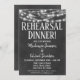 Um divertido convite jantado para o ensaio de quadro negro e branco com luzes brilhantes no topo.