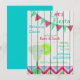 O convite de janto do ensaio de casamento foi feito num tema mexicano colorido. Gráficos de um fundo de madeira branco lavado com uma faixa cor-de-rosa, turquesa e verde, um padrão de chevron correspondente e uma bebida margarita com aparência deliciosa, decoram este convite festivo. O texto multicolorido é totalmente personalizável e pronto para personalizar o seu evento.