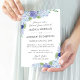 Convide sua família e amigos para seu janto de ensaio de casamento! Editar com os detalhes do evento. Este design apresenta uma ilustração de hydrangea azul. Compre a nossa coleção de Hydrangea Azul!