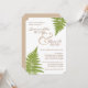 Este convite é perfeito para um elegante janto de ensaio sobre florestas. Um lindo design verde verde verde em branco e castanho claro. Para uma sensação mais elegante, faça o upgrade para a opção de papel de tela ou de feltro. Parte do Conjunto de Papelaria de Casamento Woodland.